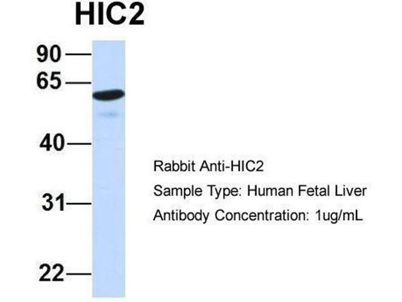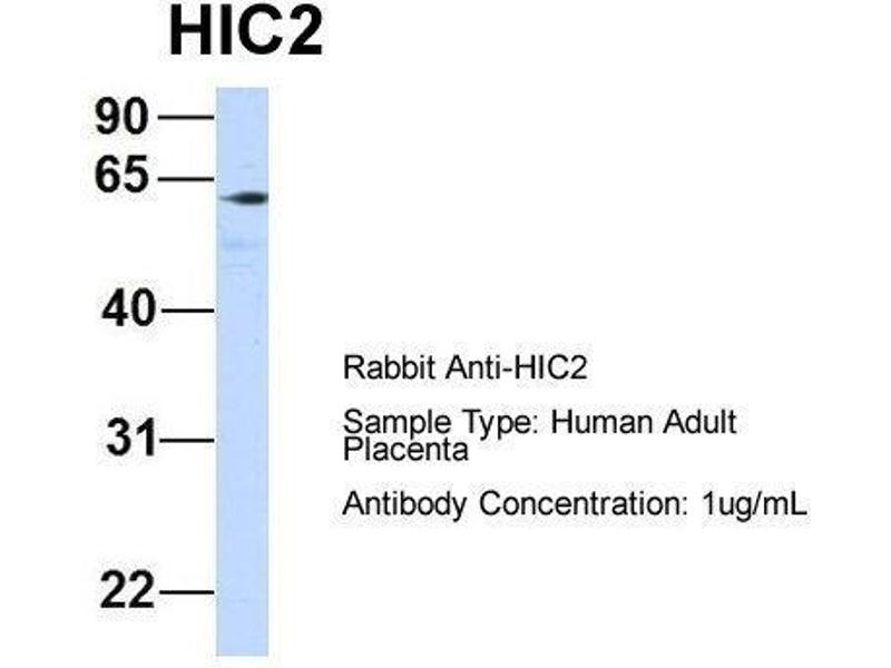 - This is a rabbit polyclonal antibody against HIC2. It was validated on Western Blot using a cell lysate as a positive control.