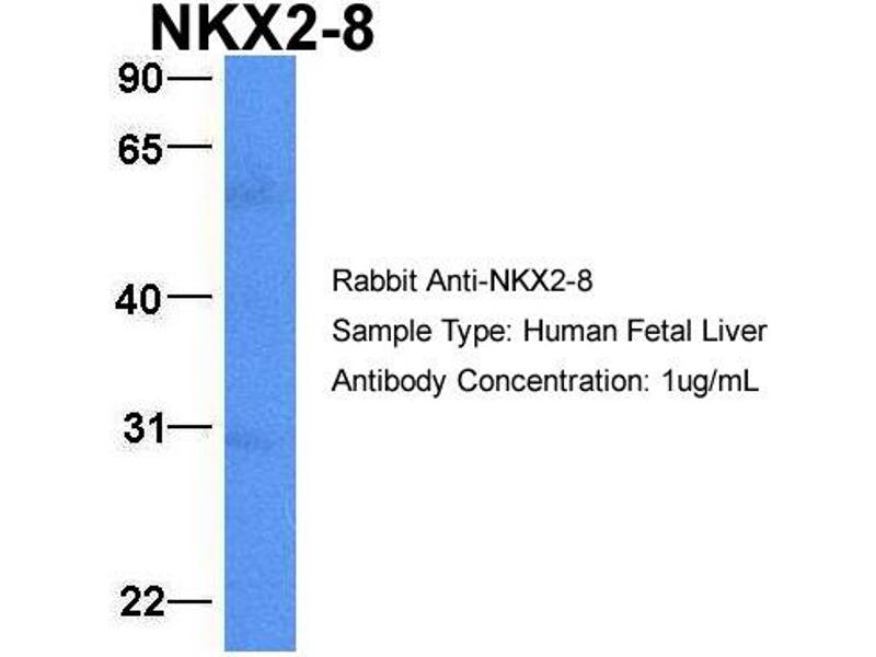 - This is a rabbit polyclonal antibody against NKX2-8. It was validated on Western Blot using a cell lysate as a positive control.