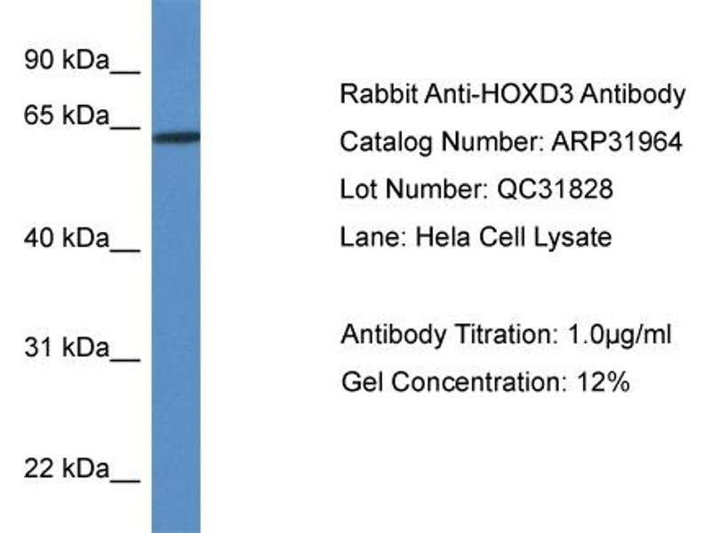 This is a rabbit polyclonal antibody against HOXD3. It was validated on Western Blot.