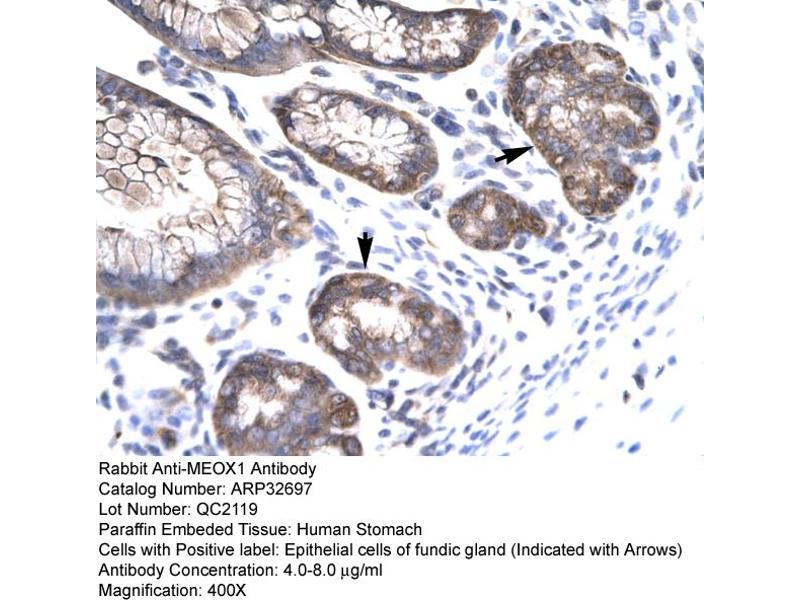 - This is a rabbit polyclonal antibody against MEOX1. It was validated on Western Blot and immunohistochemistry.