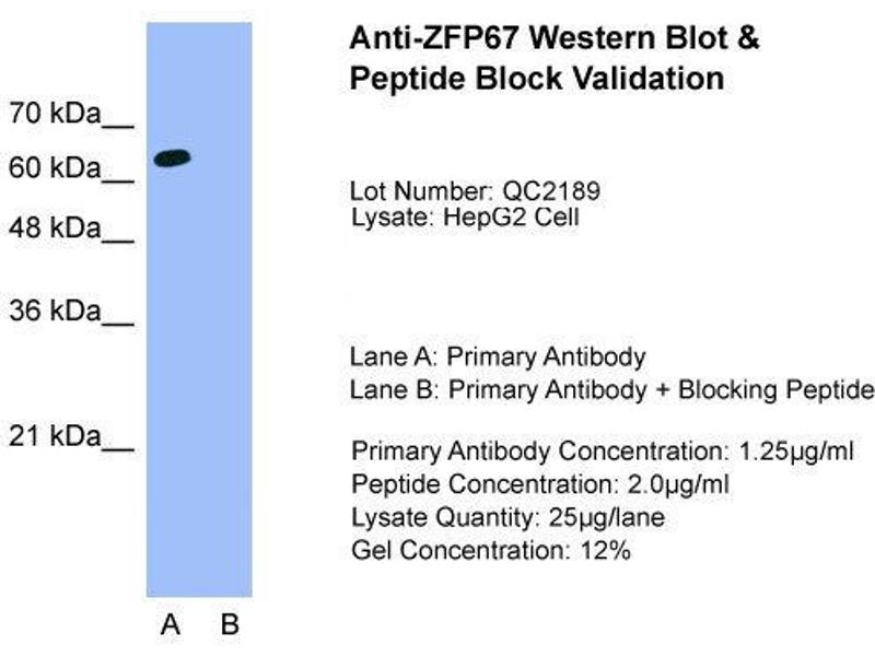 - This is a rabbit polyclonal antibody against ZFP67. It was validated on Western Blot and immunohistochemistry.