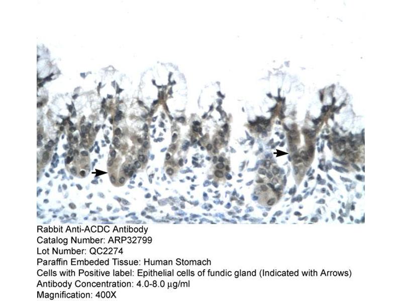 - This is a rabbit polyclonal antibody against ACDC. It was validated on Western Blot and immunohistochemistry.