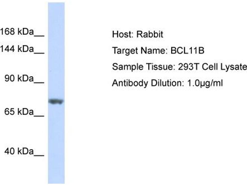 This is a rabbit polyclonal antibody against BCL11B. It was validated on Western Blot.