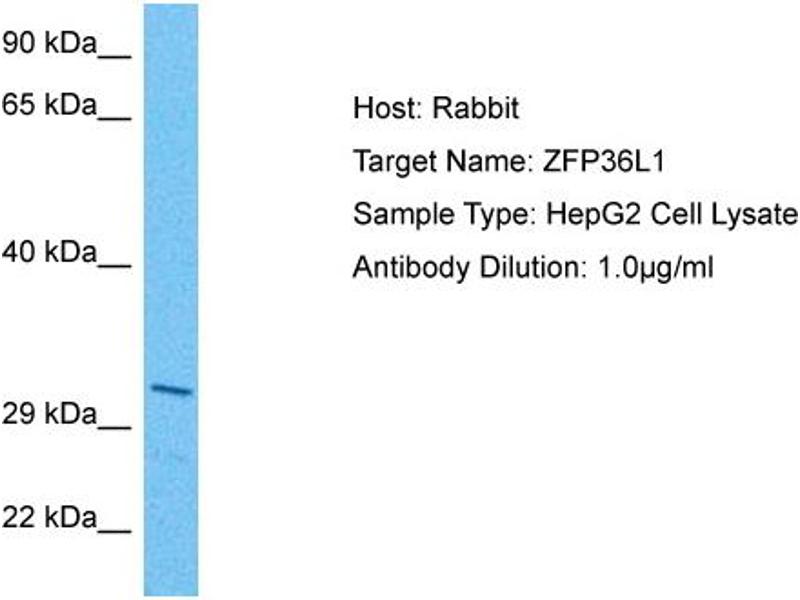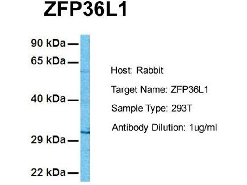 - This is a rabbit polyclonal antibody against ZFP36L1. It was validated on Western Blot using a cell lysate as a positive control.