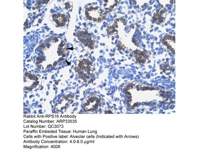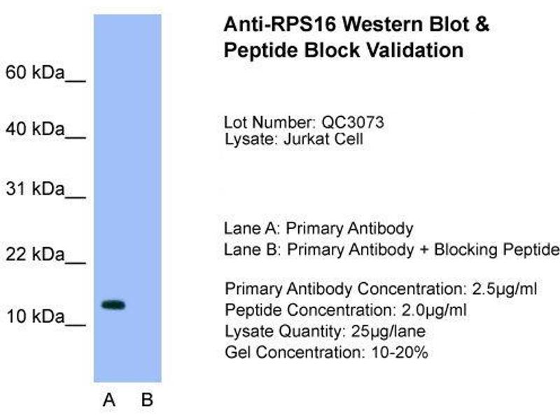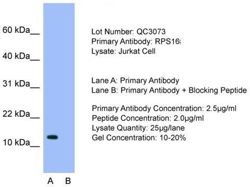 This is a rabbit polyclonal antibody against RPS16. It was validated on Western Blot and immunohistochemistry.