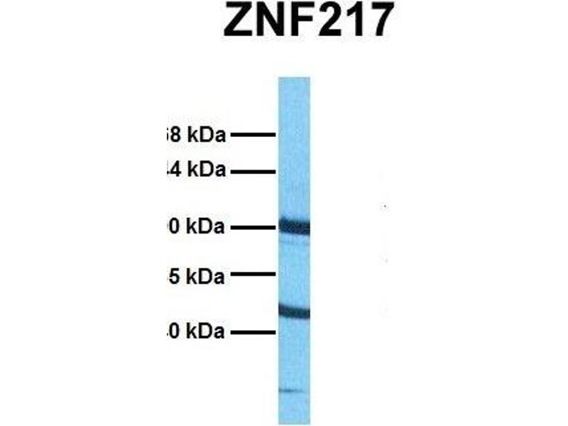 - This is a rabbit polyclonal antibody against ZNF217. It was validated on Western Blot using a cell lysate as a positive control.