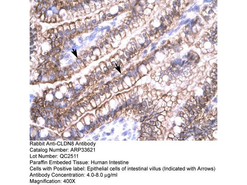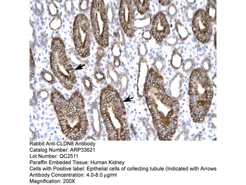 - This is a rabbit polyclonal antibody against CLDN8. It was validated on Western Blot and immunohistochemistry.
