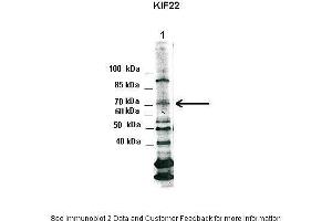 - This is a rabbit polyclonal antibody against KIF22. It was validated on Western Blot using a cell lysate as a positive control.