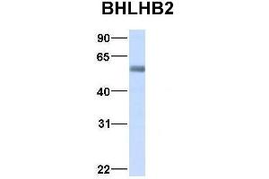 - This is a rabbit polyclonal antibody against BHLHB2. It was validated on Western Blot using a cell lysate as a positive control.