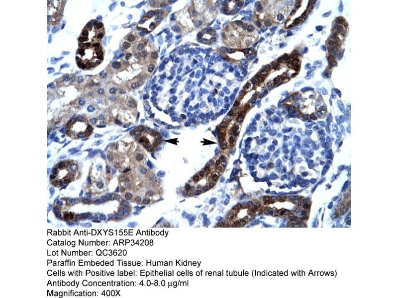 - This is a rabbit polyclonal antibody against DXYS155E. It was validated on Western Blot and immunohistochemistry.