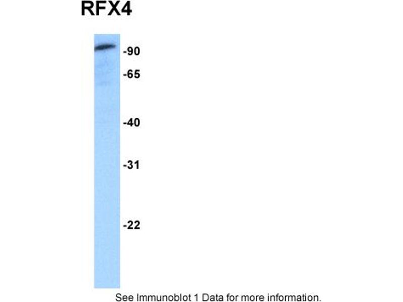 - This is a rabbit polyclonal antibody against RFX4. It was validated on Western Blot using a cell lysate as a positive control.