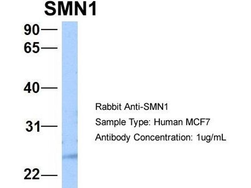 - This is a rabbit polyclonal antibody against SMN1. It was validated on Western Blot using a cell lysate as a positive control.