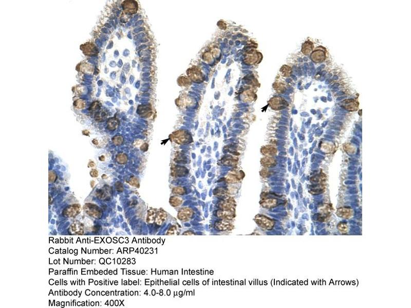 - This is a rabbit polyclonal antibody against EXOSC3. It was validated on Western Blot and immunohistochemistry.