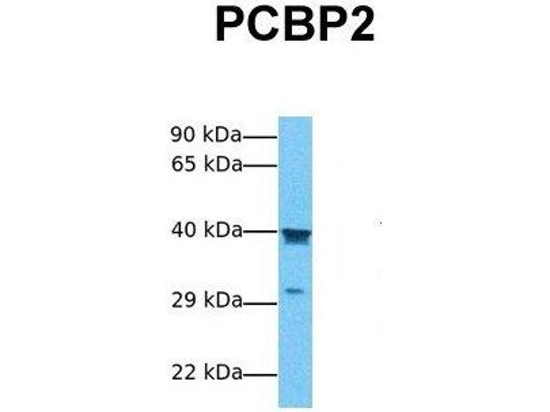 PCBP2 appears to be multifunctional. It along with PCBP-1 and hnRNPK corresponds to the major cellular poly(rC)-binding proteins. This protein together with PCBP-1 also functions as translational coactivators of poliovirus RNA via a sequence-specific interaction with stem-loop IV of the IRES and promote poliovirus RNA replication by binding to its 5'-terminal cloverleaf structure. It has also been implicated in translational control of the 15-lipoxygenase mRNA, human Papillomavirus type 16 L2 mRNA, and hepatitis A virus RNA. The protein is also suggested to play a part in formation of a sequence-specific alpha-globin mRNP complex which is associated with alpha-globin mRNA stability. This gene and PCBP-1 has paralogues PCBP3 and PCBP4 which is thought to arose as a result of duplication events of entire genes.The protein encoded by this gene appears to be multifunctional. It along with PCBP-1 and hnRNPK corresponds to the major cellular poly(rC)-binding proteins. It contains three K-homologous (KH) domains which may be involved in RNA binding. This encoded protein together with PCBP-1 also functions as translational coactivators of poliovirus RNA via a sequence-specific interaction with stem-loop IV of the IRES and promote poliovirus RNA replication by binding to its 5'-terminal cloverleaf structure. It has also been implicated in translational control of the 15-lipoxygenase mRNA, human Papillomavirus type 16 L2 mRNA, and hepatitis A virus RNA. The encoded protein is also suggested to play a part in formation of a sequence-specific alpha-globin mRNP complex which is associated with alpha-globin mRNA stability. This multiexon structural mRNA is thought to be retrotransposed to generate PCBP-1 intronless gene which has similar functions. This gene and PCBP-1 has paralogues PCBP3 and PCBP4 which is thought to arose as a result of duplication events of entire genes. It also has two processed pseudogenes PCBP2P1 and PCBP2P2. There are presently two alternatively spliced transcript variants described for this gene.