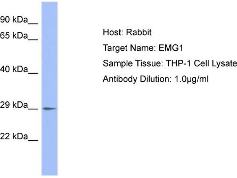 - This is a rabbit polyclonal antibody against EMG1. It was validated on Western Blot.