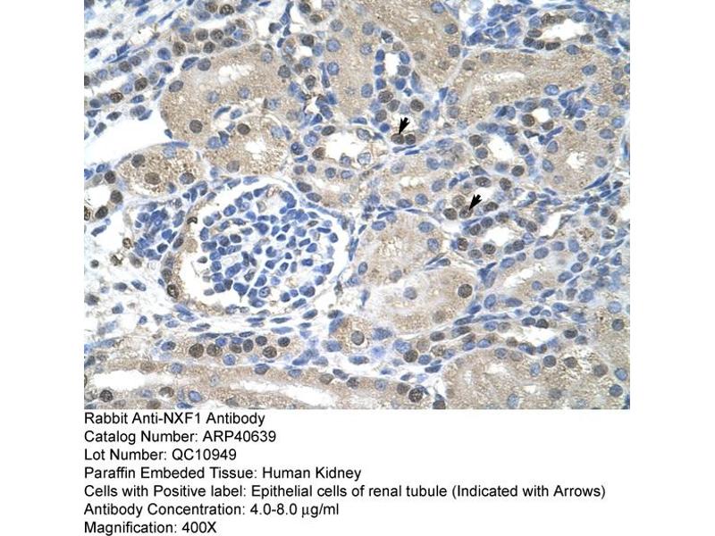 - This is a rabbit polyclonal antibody against NXF1. It was validated on Western Blot and immunohistochemistry.