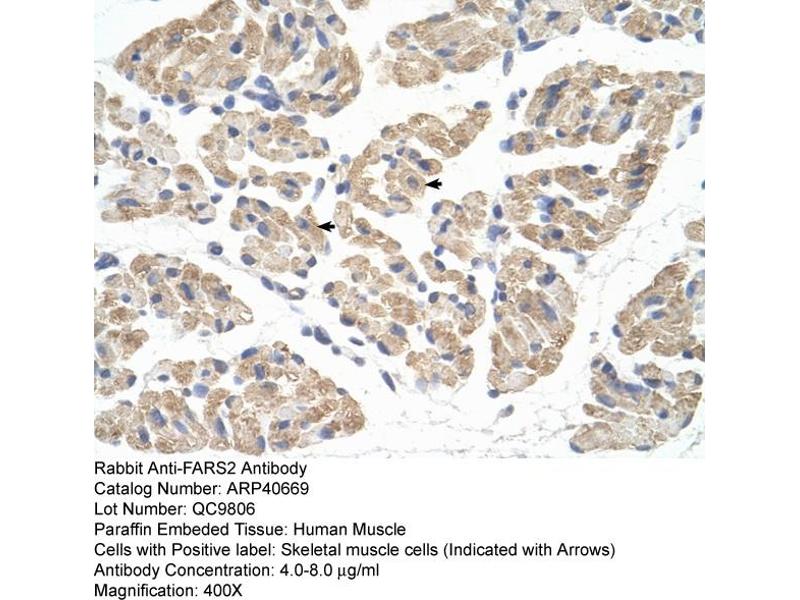 - This is a rabbit polyclonal antibody against FARS2. It was validated on Western Blot and immunohistochemistry.