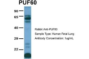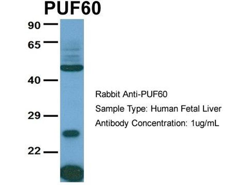 - This is a rabbit polyclonal antibody against PUF60. It was validated on Western Blot using a cell lysate as a positive control.