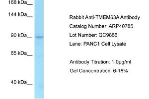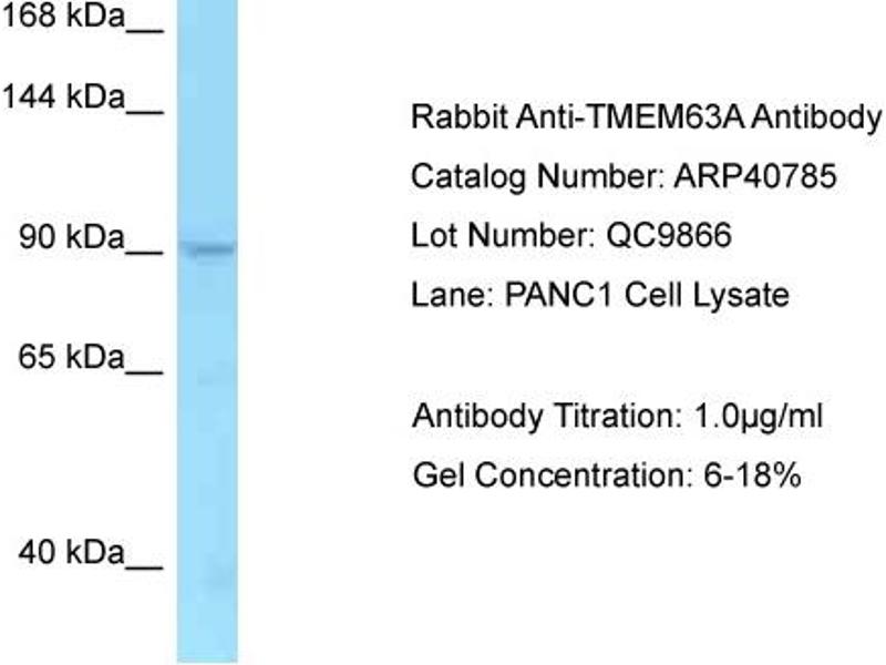 - This is a rabbit polyclonal antibody against TMEM63A. It was validated on Western Blot.
