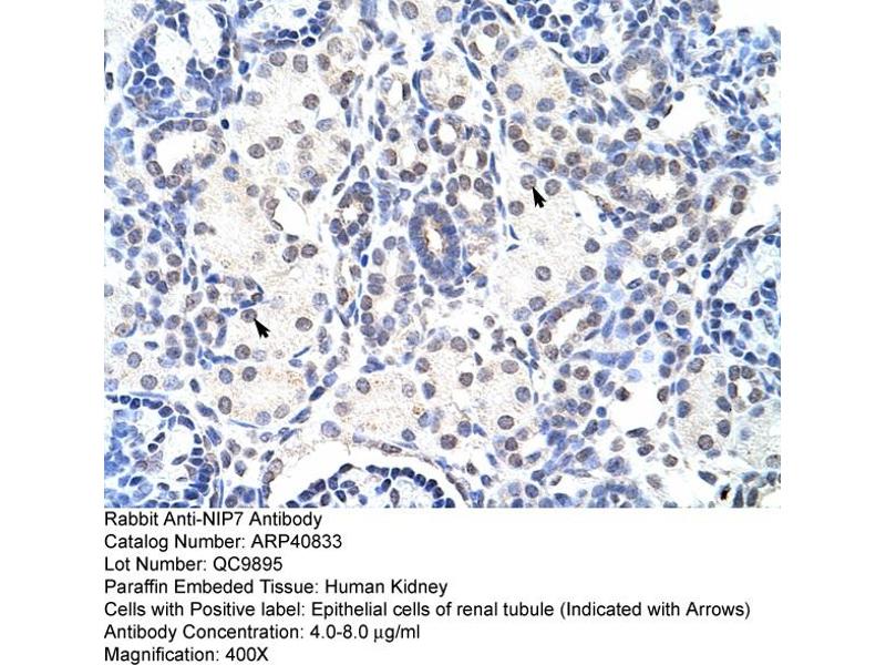 - This is a rabbit polyclonal antibody against NIP7. It was validated on Western Blot and immunohistochemistry.