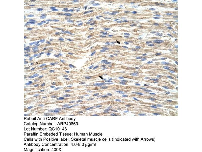 - This is a rabbit polyclonal antibody against CARF. It was validated on Western Blot and immunohistochemistry.