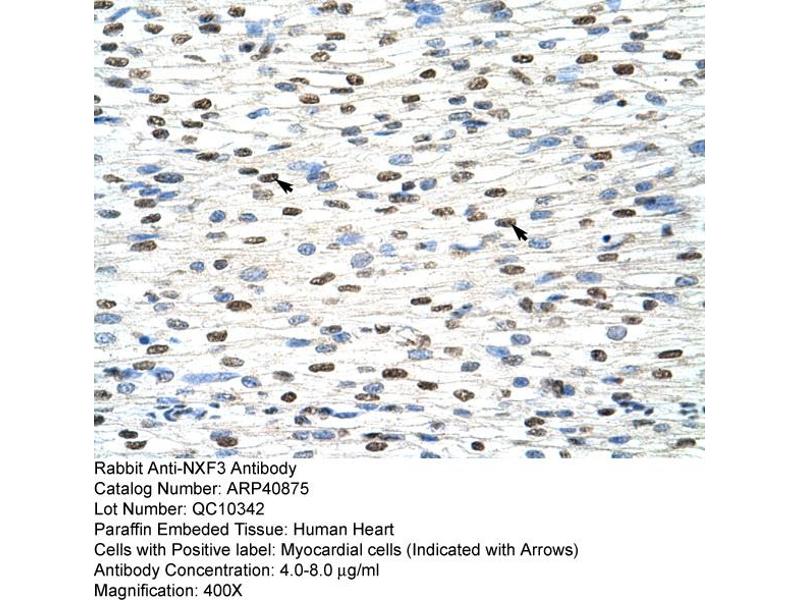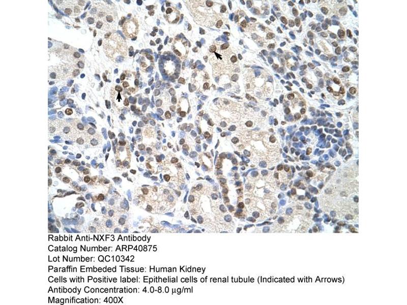 - This is a rabbit polyclonal antibody against NXF3. It was validated on Western Blot and immunohistochemistry.