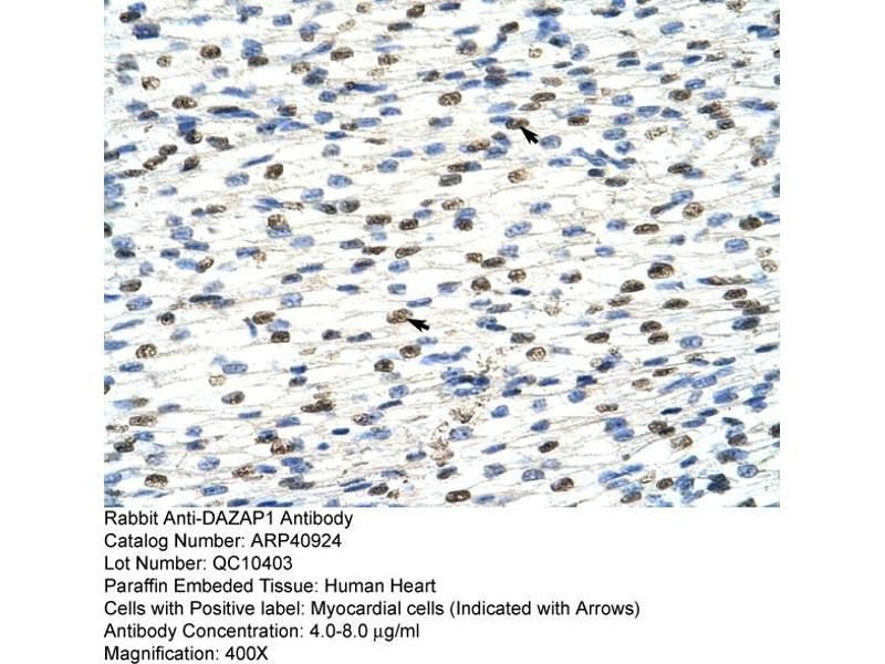 - The immunogen is a synthetic peptide directed towards the C terminal region of human DAZAP1