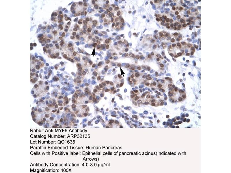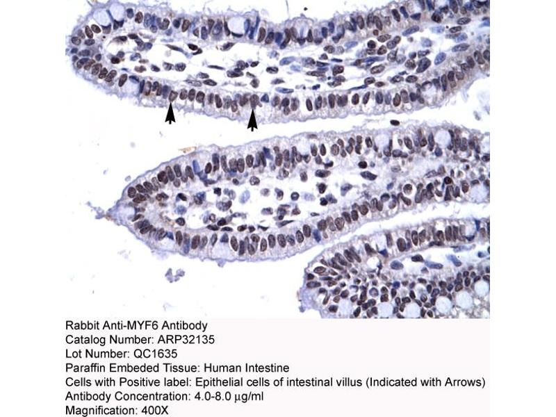 - This is a rabbit polyclonal antibody against MYF6. It was validated on Western Blot and immunohistochemistry.