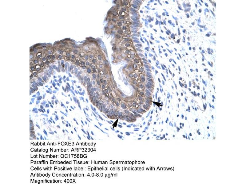- The immunogen is a synthetic peptide directed towards the C terminal region of human FOXE3