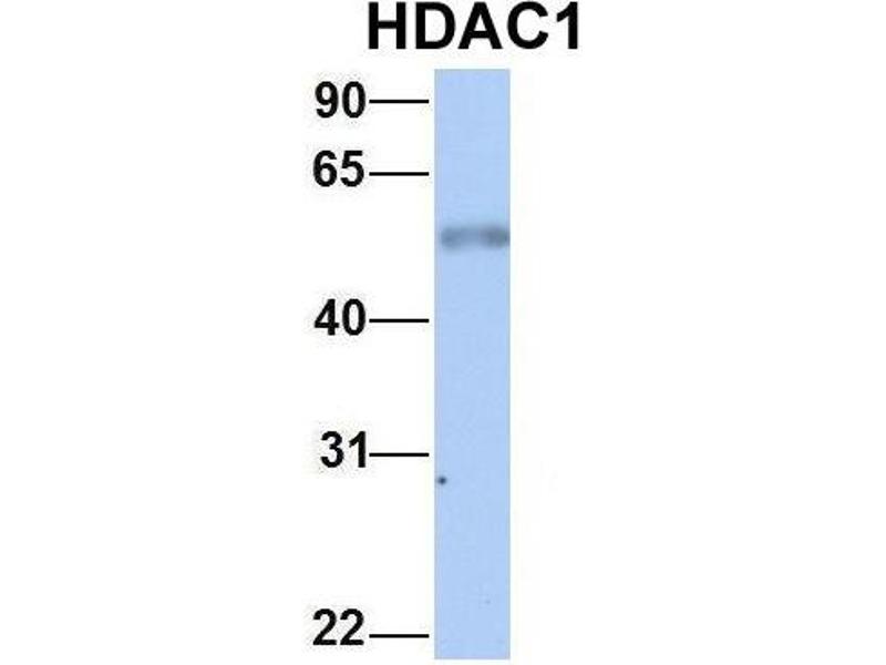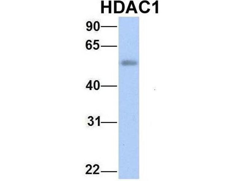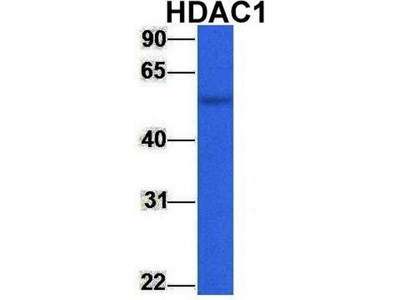 - The immunogen is a synthetic peptide directed towards the middle region of human HDAC1