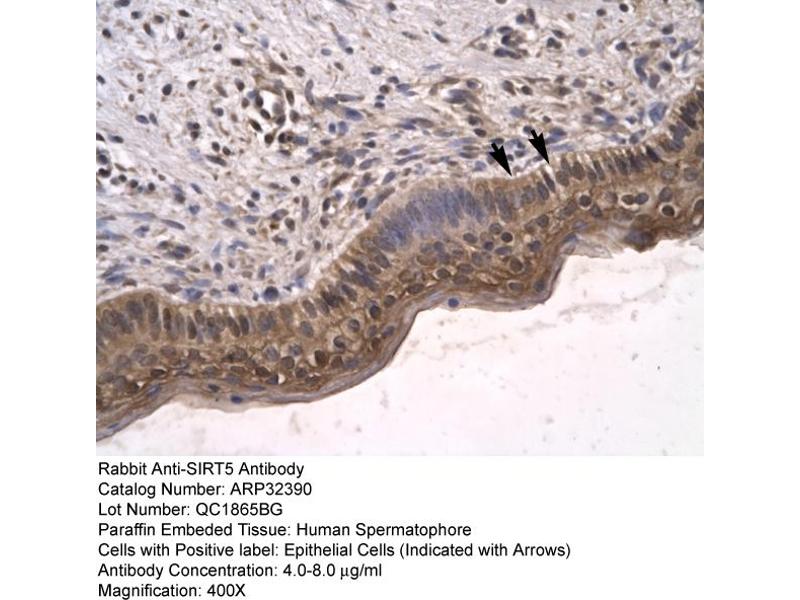 - This is a rabbit polyclonal antibody against SIRT5. It was validated on Western Blot and immunohistochemistry.