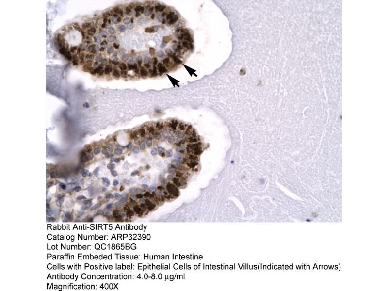- The immunogen is a synthetic peptide directed towards the C terminal region of human SIRT5
