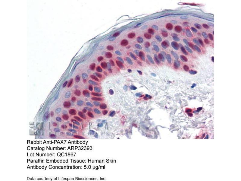 - The immunogen is a synthetic peptide directed towards the N terminal region of human PAX7