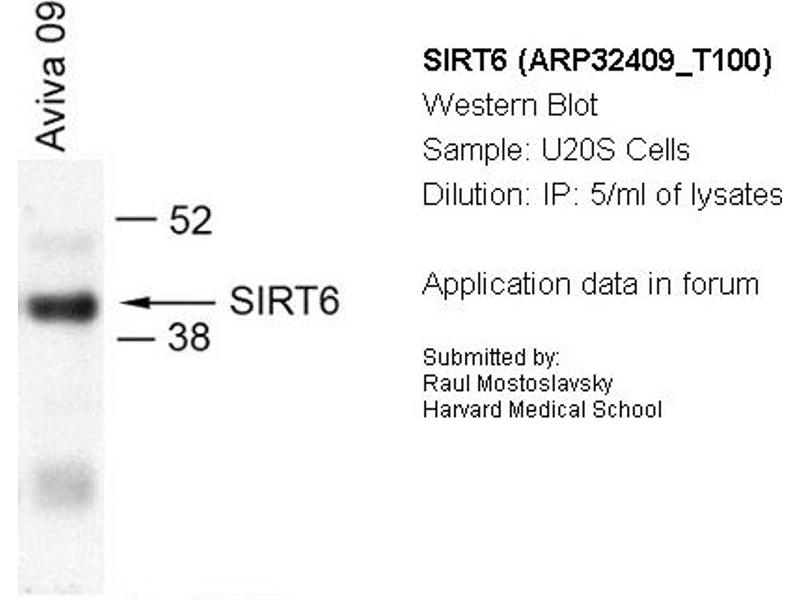 - The immunogen is a synthetic peptide directed towards the N terminal region of human SIRT6