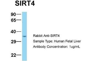 - This is a rabbit polyclonal antibody against SIRT4. It was validated on Western Blot using a cell lysate as a positive control.
