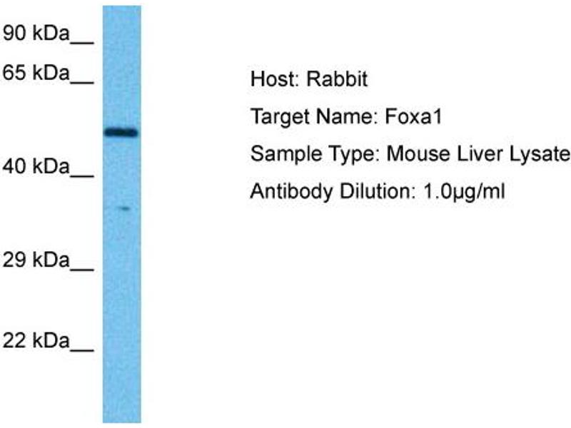 - This is a rabbit polyclonal antibody against FOXA1. It was validated on Western Blot using a cell lysate as a positive control.