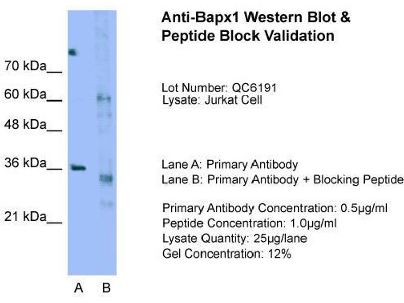 - This is a rabbit polyclonal antibody against Bapx1. It was validated on Western Blot using a cell lysate as a positive control.