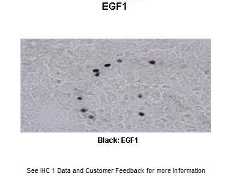Early Growth Response Protein 1 (EGR1, Krox-24 protein, nerve growth factor-induced protein A, Transcription factor ETR103, Zinc finger protein 225) belongs to the EGR family of C2H2-type zinc-finger proteins. It is a nuclear protein and functions as a transcriptional regulator. The products of target genes it activates are required for differentitation and mitogenesis. Studies suggest this is a cancer suppresor gene.
