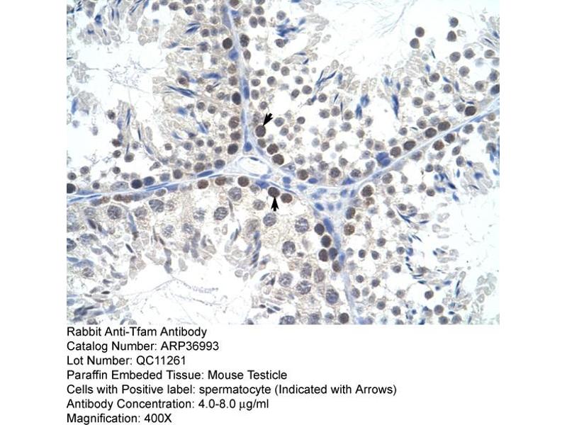 - The immunogen is a synthetic peptide directed towards the C terminal region of mouse Tfam