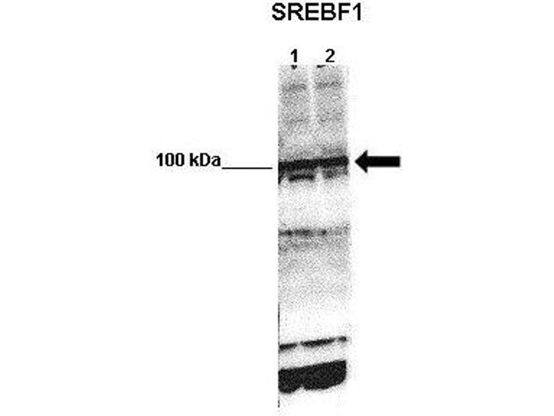 - This is a rabbit polyclonal antibody against SREBF1. It was validated on Western Blot using a cell lysate as a positive control.