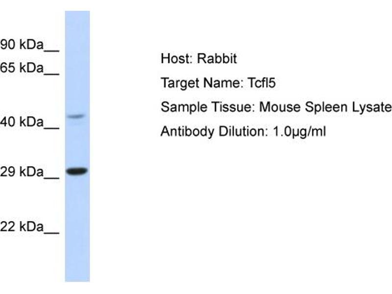 The immunogen is a synthetic peptide directed towards the N-terminal region of mouse TCFL5