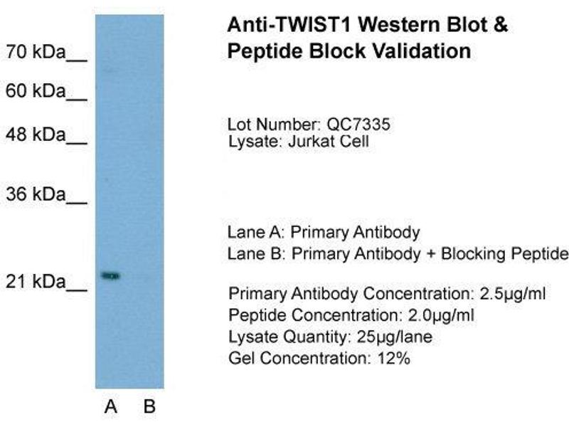 - This is a rabbit polyclonal antibody against TWIST1. It was validated on Western Blot using a cell lysate as a positive control.