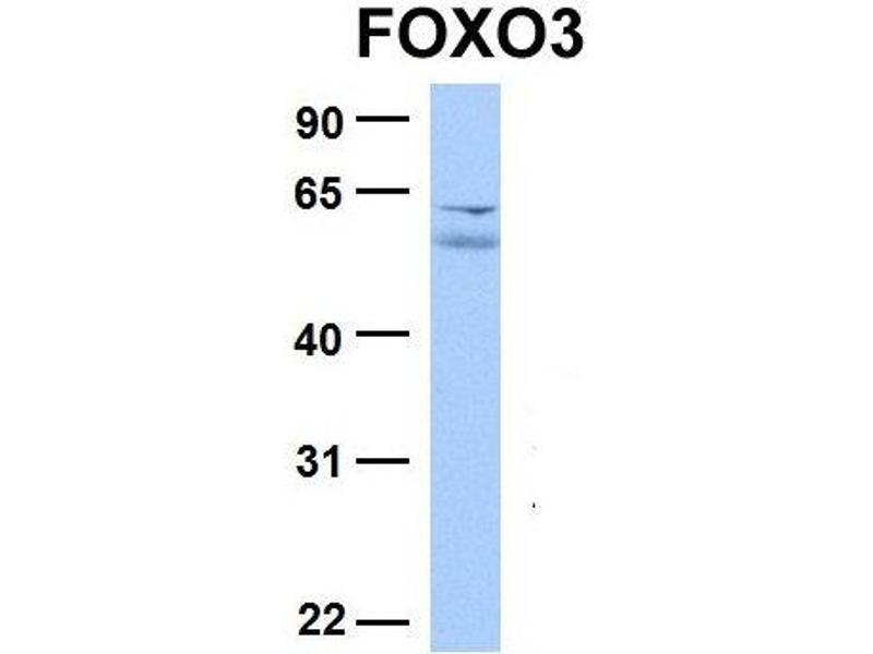 - The immunogen is a synthetic peptide directed towards the N terminal region of human FOXO3