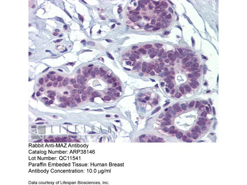 - The immunogen is a synthetic peptide directed towards the N terminal region of human MAZ