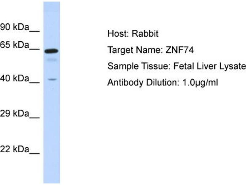 - This is a rabbit polyclonal antibody against ZNF74. It was validated on Western Blot.