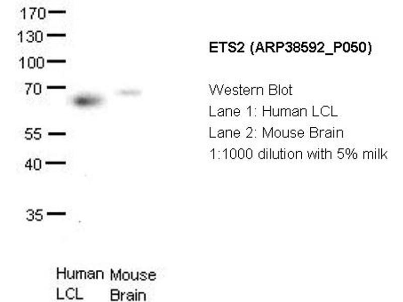 - This is a rabbit polyclonal antibody against ETS2. It was validated on Western Blot using a cell lysate as a positive control.