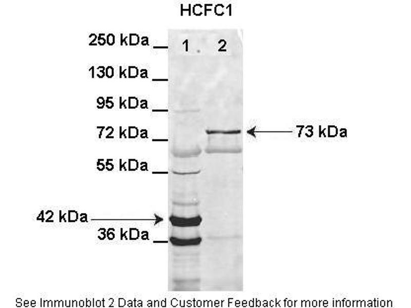 - The immunogen is a synthetic peptide directed towards the N terminal region of human HCFC1