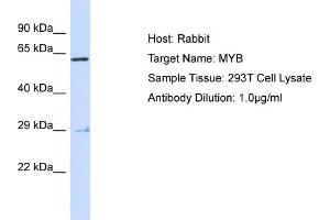 The Rabbit Polyclonal anti-MYB antibody (ABIN2780680) specifically detects MYB in WB.