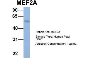 - This is a rabbit polyclonal antibody against MEF2A. It was validated on Western Blot using a cell lysate as a positive control.