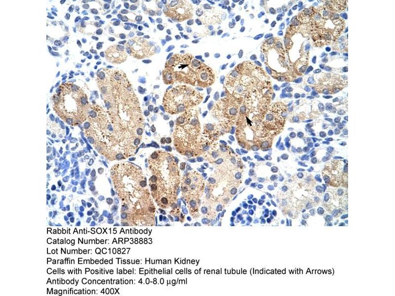- This is a rabbit polyclonal antibody against SOX15. It was validated on Western Blot and immunohistochemistry.